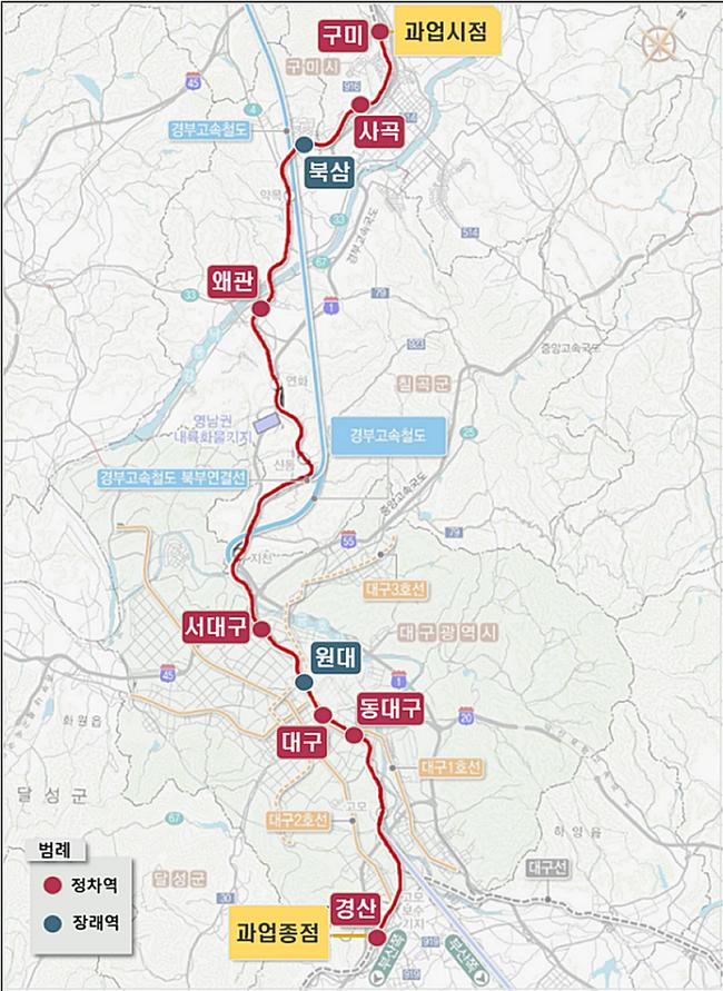 대경선 광역철도 개통 사업 노선도