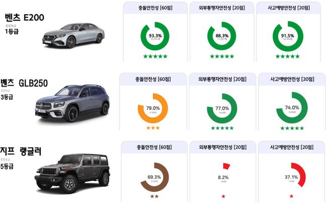 한편, 토요타 프리우스는 2등급, 현대 캐스퍼 일렉트릭과 벤츠 GLB250은 3등급, 테슬라 모델Y는 4등급, 지프 랭글러는 5등급으로 평가됐다.