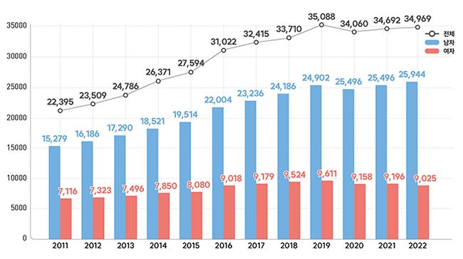 질병관리청이 발표한 2022년 심뇌혈관질환 발생통계에 따르면, 심근경색증과 뇌졸중 발생 건수가 지속 증가하는 가운데, 심근경색증 치명률은 감소세를 보인 반면 뇌졸중 치명률은 2020년 이후 증가 추세로 전환된 것으로 나타났다.