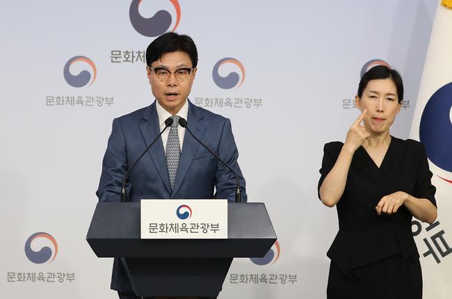 문화체육관광부 이정우 체육국장이 지난 9월 10일 정부서울청사별관에서 대한민국배드민턴협회 사무 검사 및 보조금 점검 상황 중간 발표를 하고 있다.