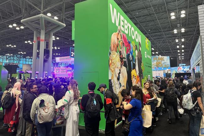네이버웹툰은 올해 처음으로 뉴욕 코믹콘에 연 네이버웹툰 플랫폼과 작품을 소개하는 부스.