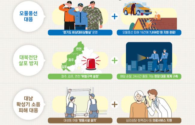 경기도는 북한이 날려 보낸 오물 풍선과 대남 확성기 소음으로 인해 피해를 입은 접경지역 주민들에게 긴급 지원과 피해 복구를 진행했다.